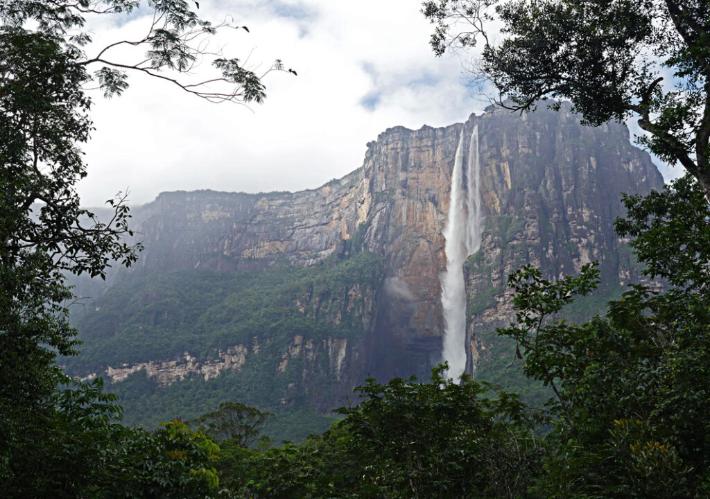 Während der Regenzeit, vor allem von Juni bis Oktober, erreicht der Salto Ángel seinen spektakulärsten Wasserstand. Dann donnert das Wasser über die Felskante des Auyán-Tepui mit unaufhaltsamer Wucht.