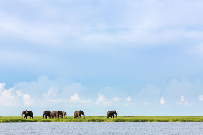 Die Chobe Riverfront zählt zu den eindrucksvollsten Wildgebieten des Landes. Durch die ständige Wasserquelle des Chobe Flusses zieht sie das ganze Jahr über eine beeindruckende Vielfalt an Wildtieren an. Besonders während der Trockenzeit (Mai bis Oktober), wenn Wasser in anderen Regionen knapp wird, konzentriert sich das Leben am Fluss: Elefanten, Büffel und Antilopen kommen in großer Zahl ans Ufer, während auch Raubtiere die Nähe des Wassers suchen. In der Regenzeit (November bis April) verwandelt sich die Region in eine grüne Oase voller Leben – mit blühender Vegetation, unzähligen Vogelarten und Jungtieren, die die Landschaft beleben.