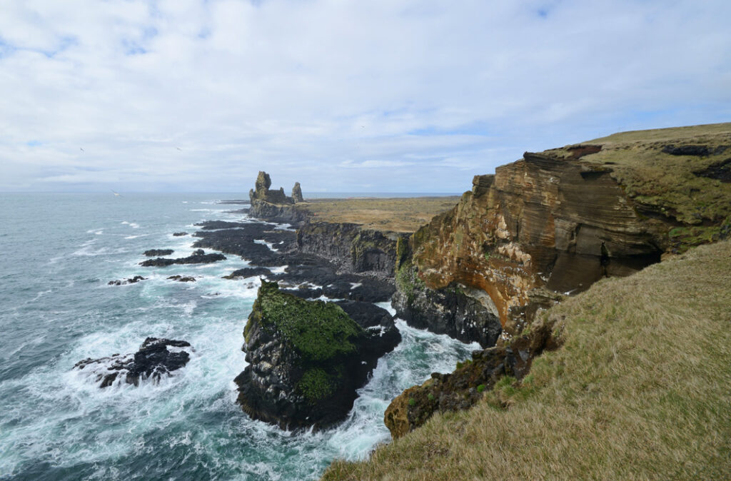 Über Ólafsvík geht es weiter Richtung Spitze der Halbinsel. Bei guter Sicht werdet ihr immer wieder den sagenumwobene Snæfellsjökull erblicken, da die Straße das Bergmassiv fast umrundet. Übrigens erlangte dieser gletscherbedeckte Vulkan Berühmtheit durch Jules Verne, denn der Beginn seiner „Reise zum Mittelpunkt der Erde“ ist genau in diesem Krater angesiedelt.