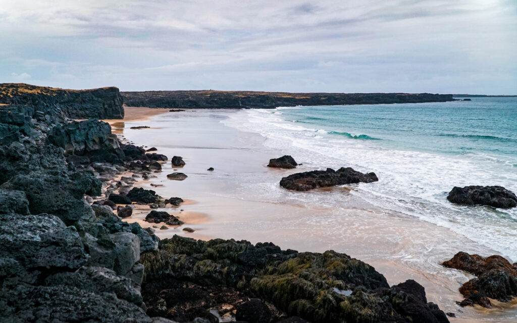 Der nächste Halt ist am Djúpalónssandur. Schwarzer Strand mit Lavafelsen und mitunter tosender Brandung, ein mystisch anmutender Ort. Ein Fotomotiv jagt das nächste an der zerklüfteten Küste von Snæfellsnes: Die Schornsteine von Lóndrangar, der Felsenbogen bei Arnarstapi und zwischendurch moosbewachsende Lavafelder, eindrucksvolle Berge und die allgegenwärtigen Wasserfälle. Nicht alle Sehenswürdigkeiten können besucht werden, aber ein Stopp an der Kirche von Búdir (Búðakirkja) ist ein Muss. Nicht groß, aber insbesondere mit der kargen Landschaft im Hintergrund ist dieses isländische Bauwerk ein tolles Motiv.