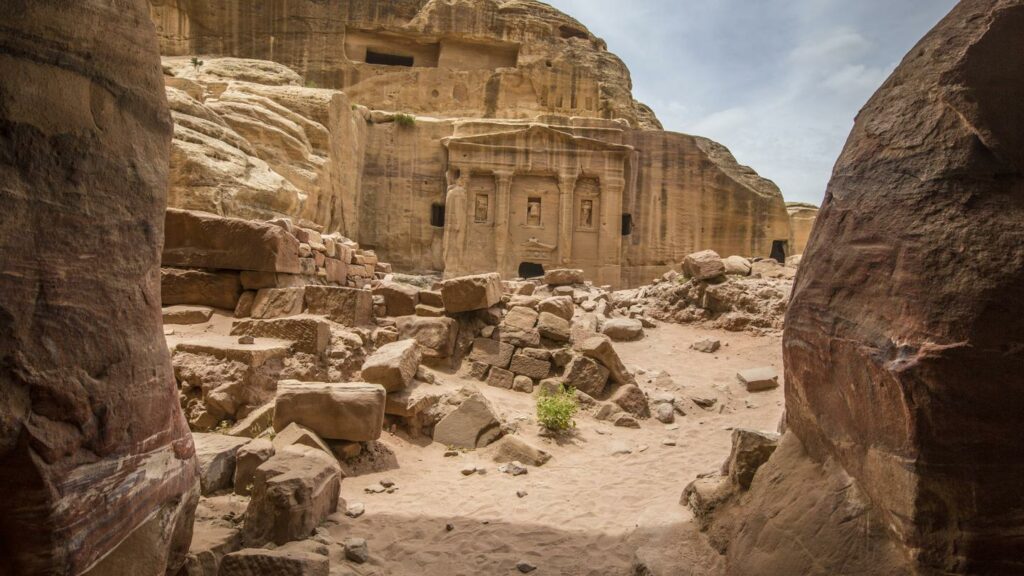 Nachdem du diese Stätte erkundet hast, machst du dich auf den kurzen Weg nach Petra selbst. Der Weg zwischen den beiden Stätten beträgt ca. 5 km (3,1 Meilen). Die Spannung steigt, wenn man das Kloster von einem Aussichtspunkt hoch über den Ruinen von Petra erblicken kann.