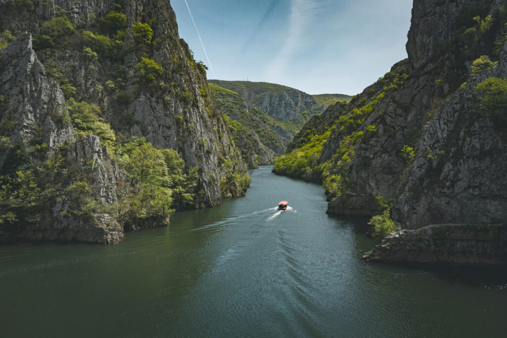 Euer heutiger Tagesausflug geht zum 15 km entfertnen Matka Canyon, eine durch den Treska Fluss geschnittene Schlucht durch die Berge Suva. Erkunde dieses hinreißende Stück Natur – wo sich über 70 Arten von Schmetterlingen tummeln – zu Fuß oder per Boot. Die Umgebung hat auch Höhlen zu bieten, insbesondere die Tropfsteinhöhle Vrelo, die nur auf dem Wasserweg erreichbar ist und vermutlich die tiefsten Unterwasserhöhlen der Welt birgt. Kulturinteressierte haben eine Auswahl von Klöstern, wobei das St. Andrews Kloster mit seinen kunsthistorisch bedeutsamen Fresken und seiner Lage am Wasser in der Schlucht hervorsticht.