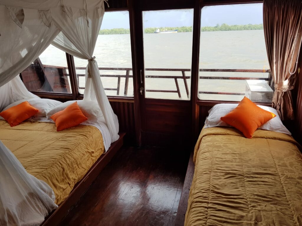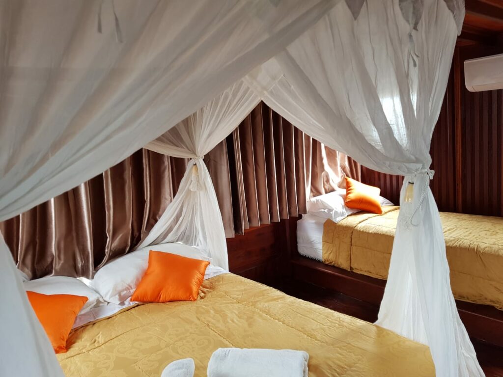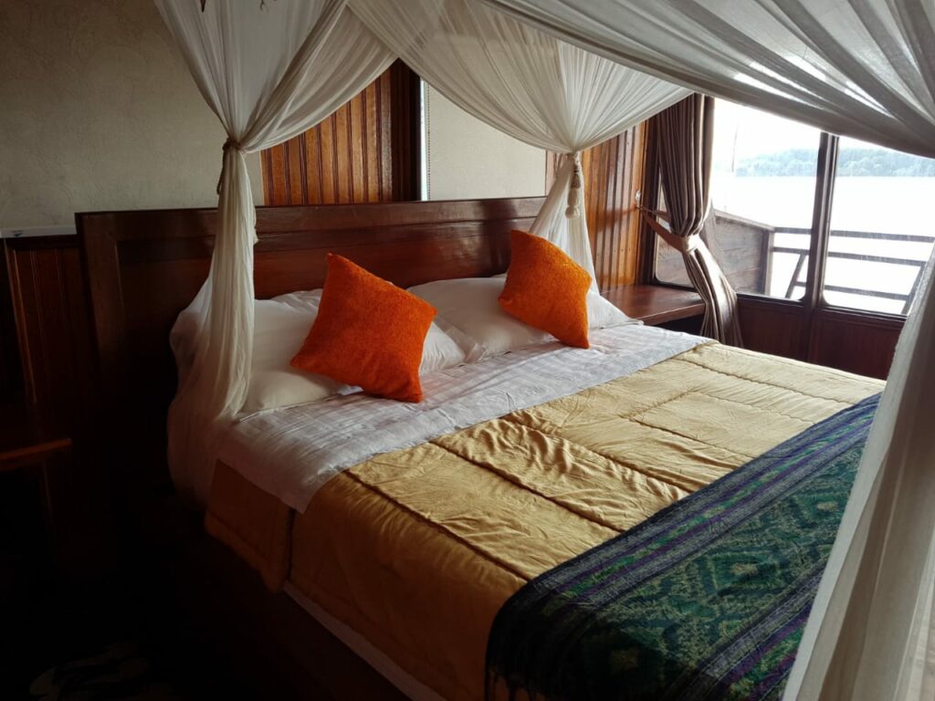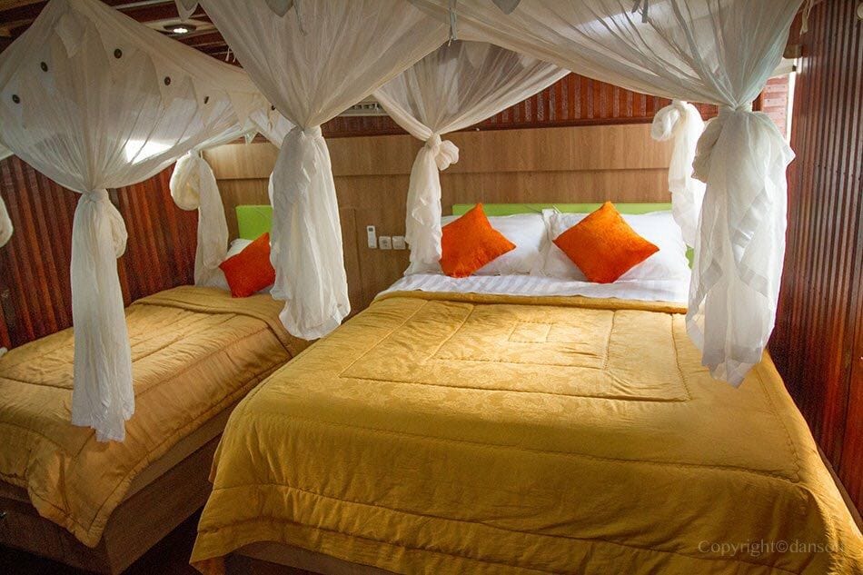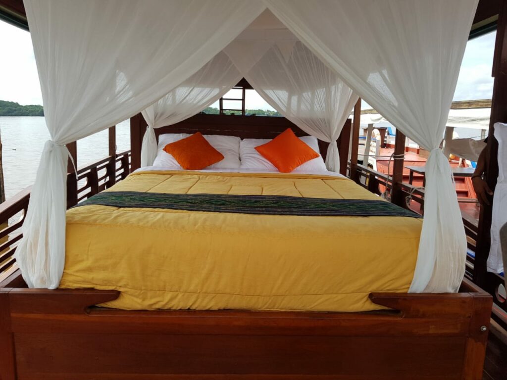 Übernachtung: Auf dem Bootsdeck mit bequemer Matratzen und Moskitoschutz