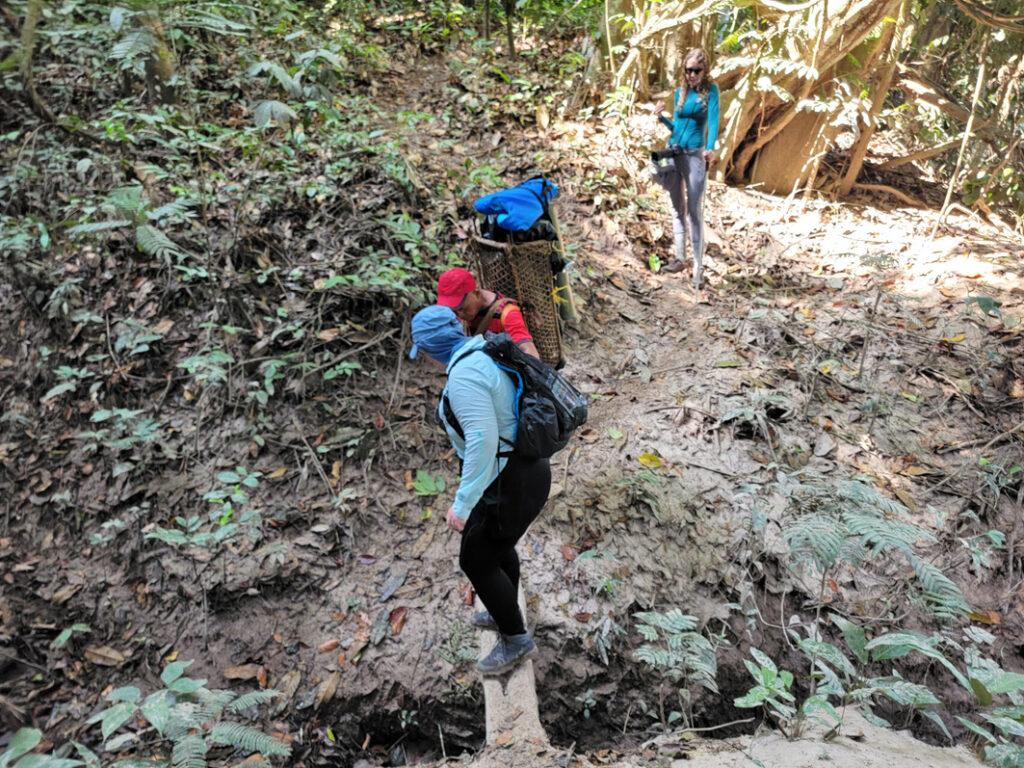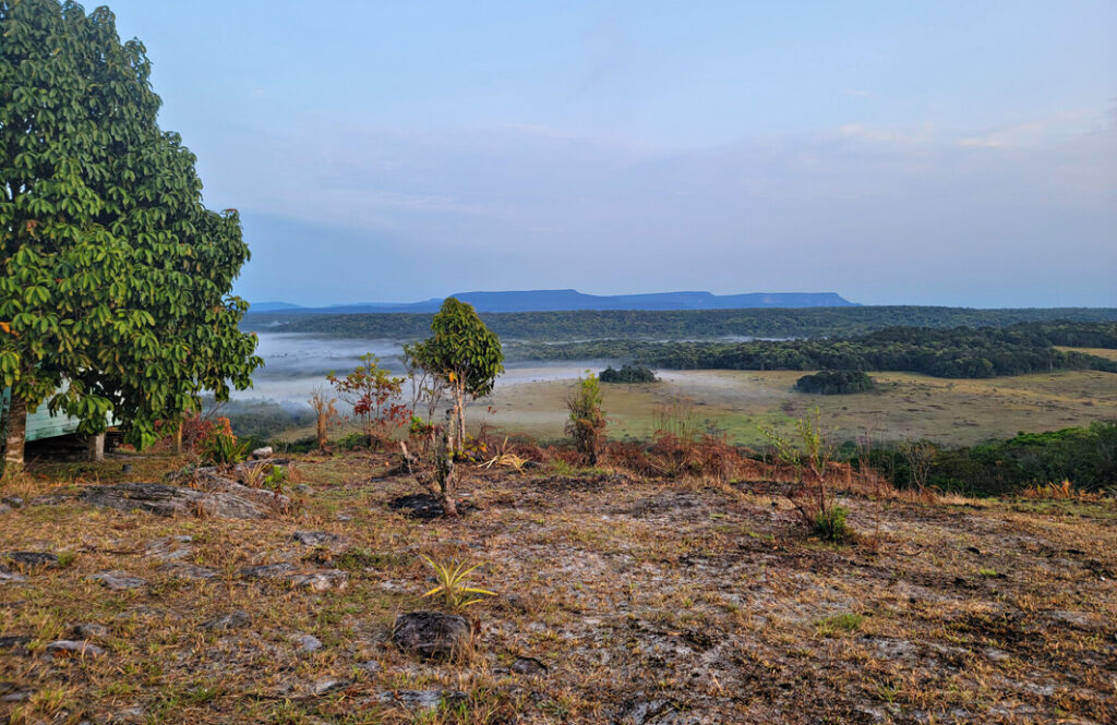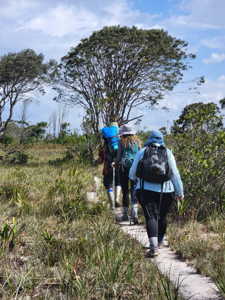 Nach einem stärkenden Frühstück packen alle gemeinsam das Camp zusammen und machen sich auf den Weg zur nächsten Etappe eurer Trekking Expedition in Guyana. Heute erwarten dich 9,5 Meilen (15,1 km) atemberaubender Landschaft, während du vom dichten Regenwald in die offenen Hochland-Savannen aufsteigst – umgeben von den imposanten Tepuis am Horizont.