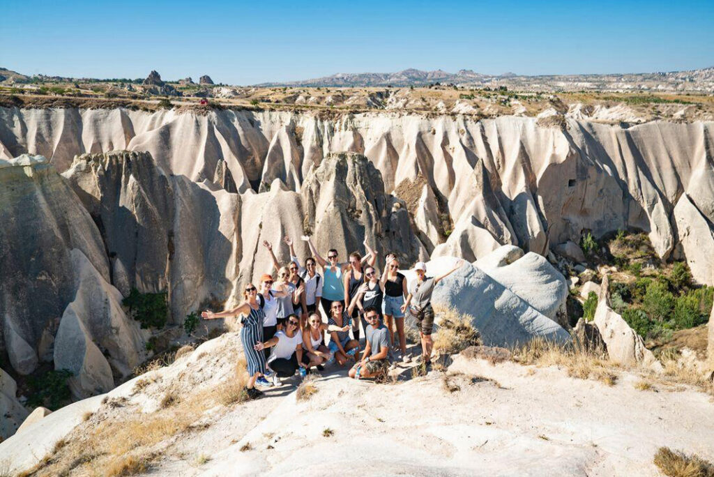Bereit für ein Abenteuer? Heute geht es früh los, aber euer nächstes Ziel ist es definitiv wert. Du machst dich mit deiner Gruppe auf den Weg ins märchenhafte Kappadokien. Dir werden sofort die berühmten Felsformationen, Tuffsteinhügel und Feenkamine auffallen. Die durch vulkanische Aktivitäten entstandene surreale Landschaft wird dir definitiv den Atem verschlagen. Am späten Vormittag geht es dann ganz tief hinab in die unterirdischen Städte, die vor Tausenden von Jahren in den weichen Tuffstein gehauen wurden. Beeindruckende Tunnel, Räume und Gänge auf mehreren Ebenen zeugen von dem Leben hier in der Vergangenheit. Am Nachmittag geht es faszinierend weiter, denn ein Besuch im Pigeon Valley steht an. Das Tal entzückt mit zahlreichen, in weichen Stein geformten Vogelhäusern. Auch das Devrent Valley ist ein sagenhaftes Tal, das zum Träumen einlädt. Die mystische, mondähnliche Landschaft spielt mit deiner Fantasie und lässt dich die skurrilsten Sachen in den Felsformationen sehen. Heute Abend lädt dich eine einheimische Familie gemeinsam mit deiner Gruppe ein, um dir ein traditionell zubereitetes türkisches Abendessen zu servieren. Authentisch, herzlich und voller regionaler Aromen.