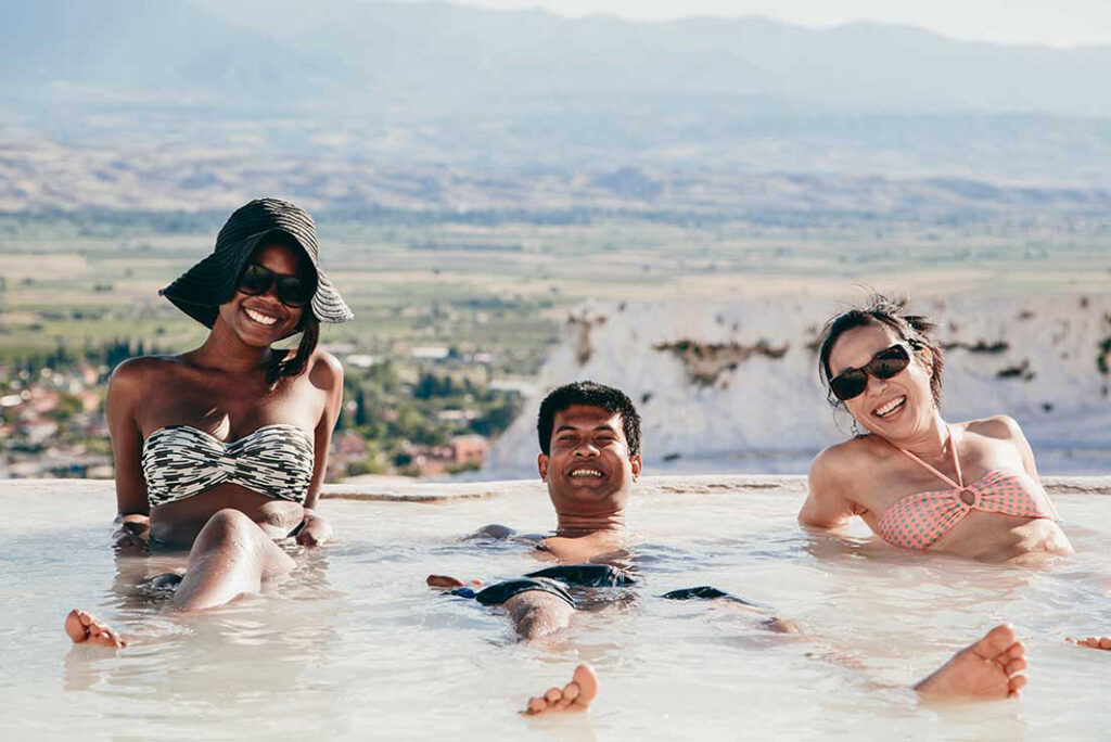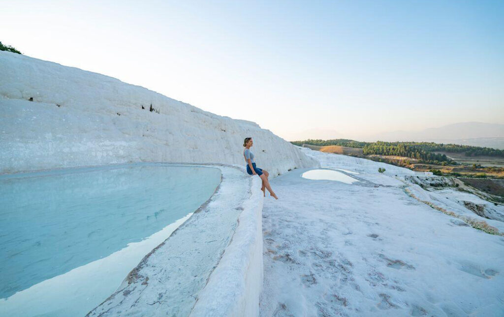 Für den nächsten Stopp auf deinem Türkei Abenteuerurlaub geht es weg von der Küste, Richtung Osten, ins Landesinnere der Türkei. In Pamukkale oder auch „Baumwollburg“ genannt, bietet sich dir ein visuelles Spektakel. Auf den ersten Blick scheint sich dir eine Szenerie aus schneebedeckten Hügel zu eröffnen. In Wahrheit handelt es sich um kalkhaltige Terrassen, die durch die heißen Thermalquellen entstanden sind. Diese haben einen hohen Calciumgehalt, sprudeln seit Jahrtausenden über und formten so diese strahlendweißen „Baumwollterrassen“. Mittlerweile ist es ein beliebter Kurort und diesem mineralhaltigen Wasser wird eine Vielzahl von Heilwirkungen zugesprochen. In der Nähe befindet sich auch die antike Stadt Hierapolis, die ästhetisch mindestens genauso punktet. Tauche ein in die faszinierende, römische Geschichte und erkunde das Leben und die Architektur der damaligen Zeit. Spaziere durch gut erhaltene Ruinen, bestaune das imposante Theater und einen der größten antiken Friedhöfe der Welt, die Nekropole.