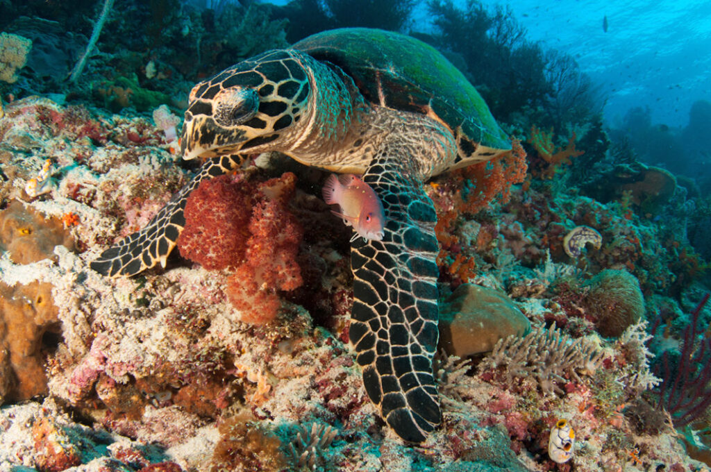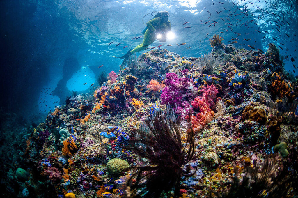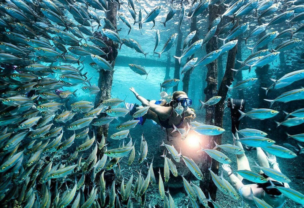 Die Sicht ist hier ausgezeichnet und Schnorchler bekommen ein Unterwassererlebnis, das sogar mit dem des Tauchens vergleichbar ist. Korallen, Riffe, Fische, außergewöhnliche Riffbewohner wie Wobbegongs (Teppichhaie), Raja-Epaulettenhaie (Laufhaie, die ihre Flossen wie Beine nutzen), Potters Zwergkaiserfische und Seepferdchen kann man hier oft beobachten. Einzigartige Korallen, die hier fast die Oberfläche erreichen, kommen anderswo nur viel tiefer vor. Schnorchler werden wahrscheinlich auch einer Fülle von Meeresschnecken in den flachen Gewässern der Bucht begegnen. Auf Raja Ampat gedeihen etwa 600 verschiedene Korallenarten, es gibt über 1300 Fischarten und 700 Arten von Weichtieren. Somit stellt Raja Ampat sogar das große australische Great Barrier Reef in den Schatten, was die Artenvielfalt angeht.