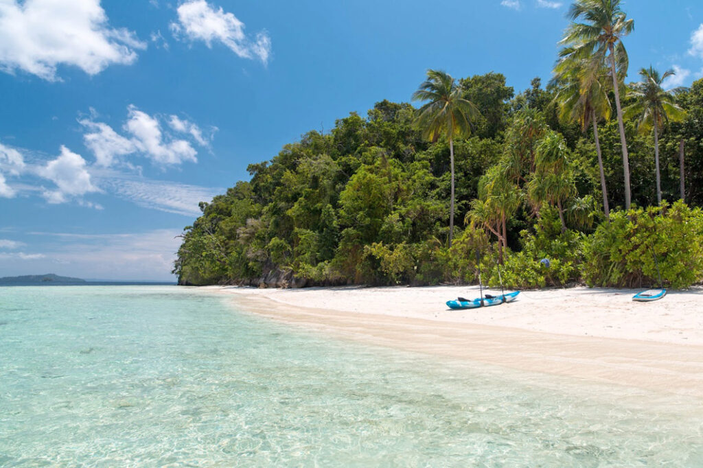 Die Wayag-Inseln sind ein unendliches Labyrinth aus üppig grünen Gipfeln, die aus mehrfarbigem azurblauem Wasser ragen – die typische Landschaft von Raja Ampat. Wayag bietet eine spektakuläre Kulisse für Wassersport und Strandzeit. Besteige den Gipfel der Insel für einen Panoramablick auf türkisfarbene Wasserwege oder genieße ultimative Entspannung an einem der verlassenen Strände. Beide Orte sind ideal, um den Sonnenuntergang am Horizont zu beobachten.