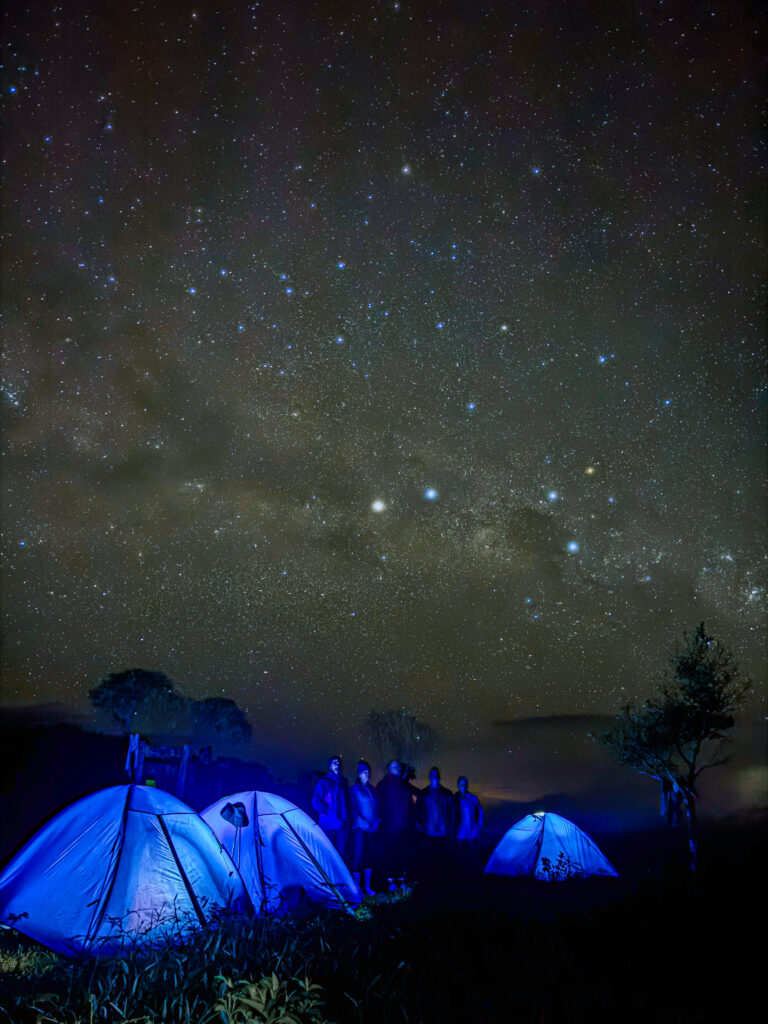 Du wanderst durch sanft gewellte Savanne, von Wind zerzaustes Gras unter den Füßen, in der Ferne die Silhouetten der Tafelberge. Am Nachmittag erreicht ihr das Camp Kukenan, idyllisch an einem klaren Fluss gelegen. Wer will, taucht ein ins kühle Wasser, ein erfrischendes Ritual nach dem ersten Trekkingtag. Abends lodert das Feuer, es duftet nach Grillgut und über euch breitet sich ein Sternenhimmel aus, der fast zu nah wirkt, um echt zu sein.