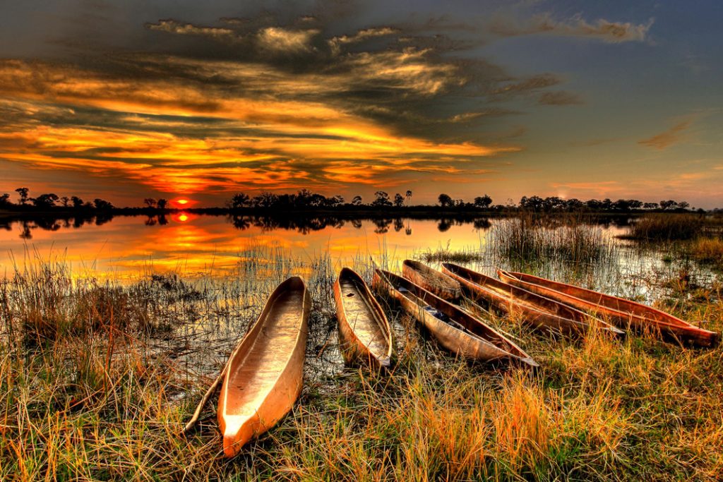 Eine etwa zweistündige Fahrt bringt euch an den Startpunkt des nächsten Abenteuers. Nach dem Umstieg in ein Mokoro (Einbaumkanu) geht es mit örtlichen Guides ins Herz des Okavango-Deltas. Das Wasser kommt aus dem angolanischen Hochland und ergießt sich über den flachen Wüstensand der Kalahari-Wüste. Das Ergebnis ist eines der größten Feuchtgebiete Afrikas mit zahlreichen Tieren.