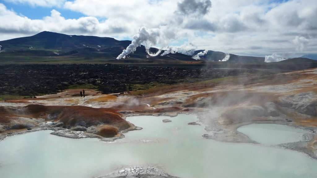 Das nächste Highlight deines Island Urlaubs ist Mývatn. Das Gebiet wurde bei einem Vulkanausbruch vor ca. 2300 Jahren geformt. Mehr als 50 Inseln lugen aus dem Wasser des Sees und bieten zahlreichen Vögeln sichere Nistplätze. Achtung, Myvatn bedeutet übersetzt „Mückensee“ und an sonnigen, trockenen und windstillen Tagen macht der See seinem Namen alle Ehre und man kann sich vor Mücken kaum retten. Die gute Nachricht ist, sie nerven nur und stechen nicht. Östlich des Sees besuchst du die Lavaformationen von Dimmuborgir („dunkle Burgen“) und die brodelnden Schlammlöcher Námaskarð. Auf einem Weg kannst du die Schwefellöcher und Schlammquellen aus der Nähe betrachten. Aber Achtung, gehe nicht zu nahe heran, der Dampf kann Flecken auf deiner Kleidung hinterlassen.