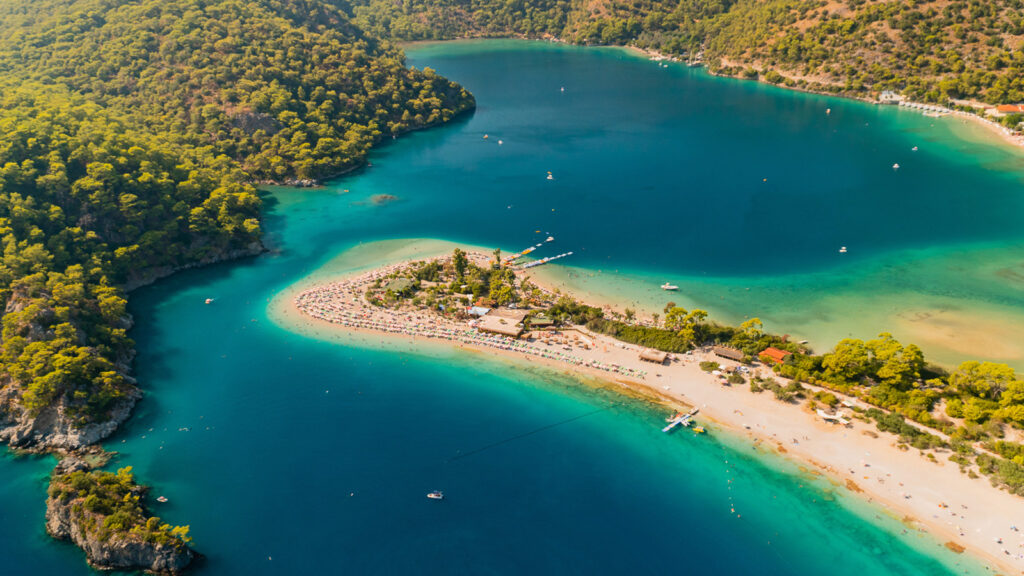 In Fethiye kannst du über dem berühmten Ölüdeniz Strand Gleitschirmfliegen. Er zählt zu den bekanntesten Stränden der Türkei und bietet mit seinem glitzernden türkisfarbenen Wasser einen erstaunlichen Blick über das Mittelmeer. Dies ist ein unvergessliches Abenteuer!